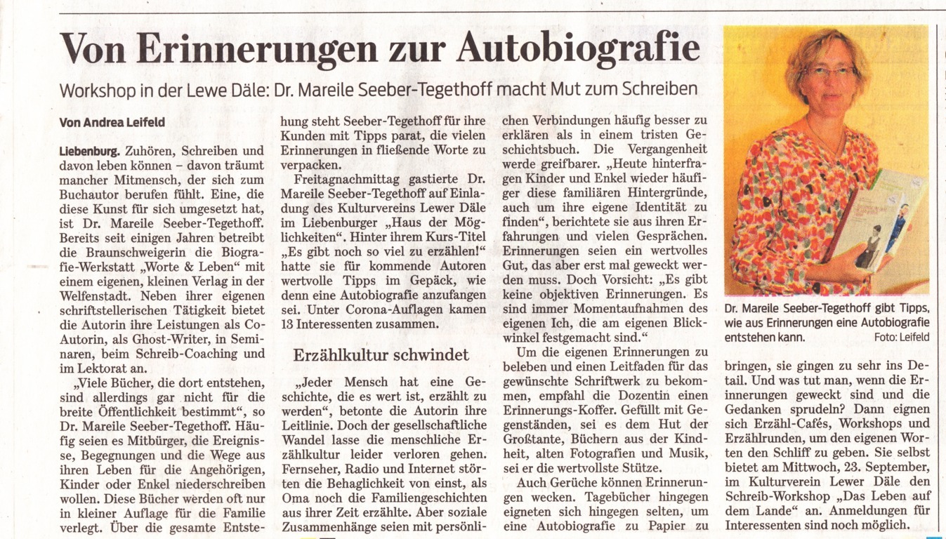 Goslarsche Zeitung, 08.09.2020: Von Erinnerungen zur Autobiografie